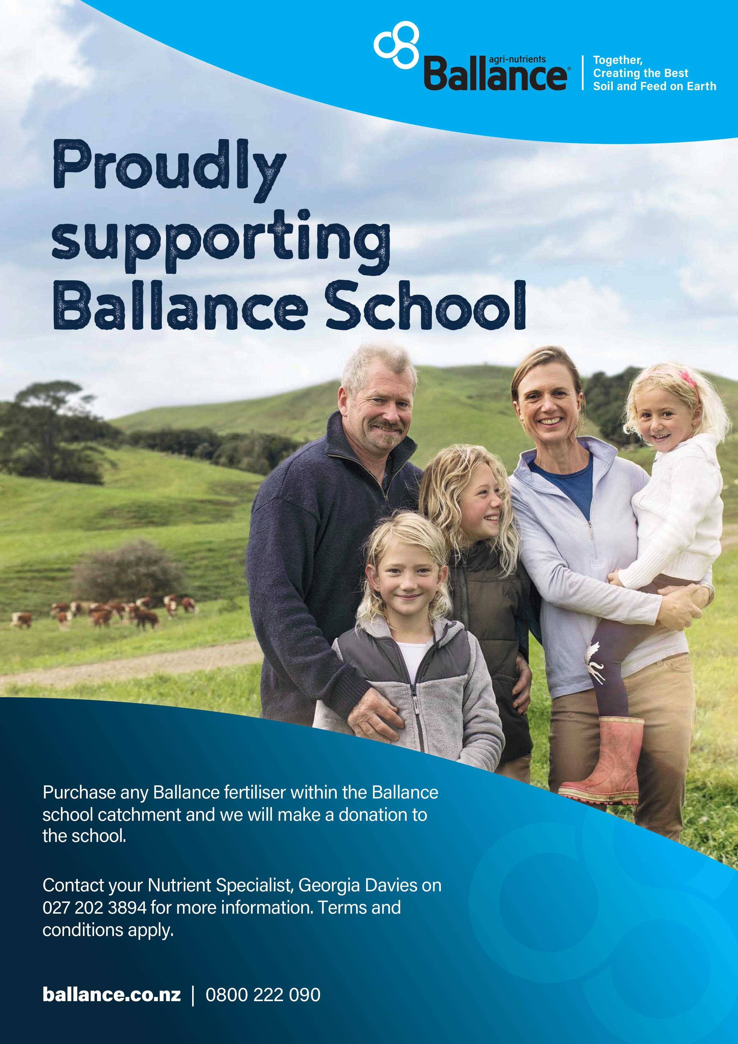 Like all schools in New Zealand, Ballance School is governed by a board of trustees who set policy and guide management in implementation of the curriculum and establishment of the learning environment as outlined by the Ministry of Education and local community.